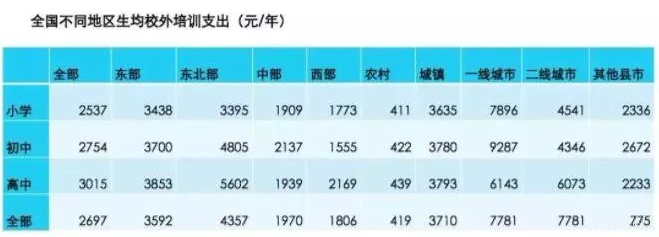 数据显示,中小学阶段学生的校外培训总体参与率为48.3%,参与校外培训的学生平均支出约为5616元,平摊的生均支出为2697元。