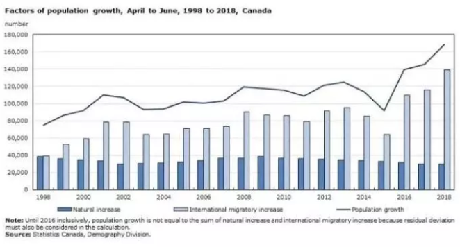 近日,加拿大移民局官方统计,2018年第二季度加拿大人口增长为168,687人,而移民占到了其中的82%。