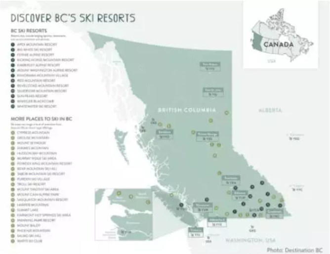 大自然的恩赐,加上BC人的智慧和眼光,让众多世界级的现代化滑雪度假村在BC境内诞生,那么,有哪些优秀的滑雪场呢?