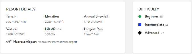 BC省排名第一也是最大的滑雪场地,当然价格消费也不低。Whistler位于温哥华的北部,从温哥华市区出发大约1小时30分钟的车程。