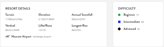 Sun Peaks Resort位于温哥华往东北部方向,驾驶时间4小时12分钟。BC省第二大场地。雪山下面的每一间酒店很有特色,多数设有露天温泉,可以在寒冻的夜晚泡在室外露天池仰望星空无比绝伦。