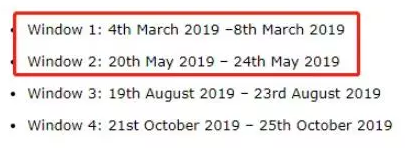 2019年递交周期如下: